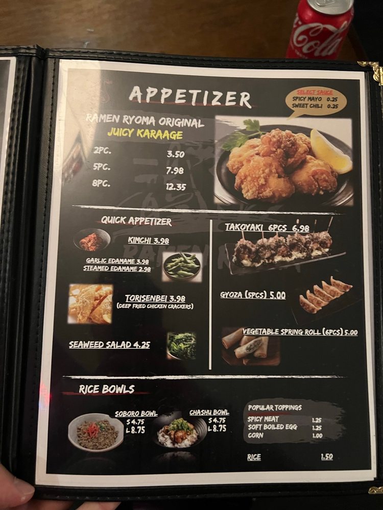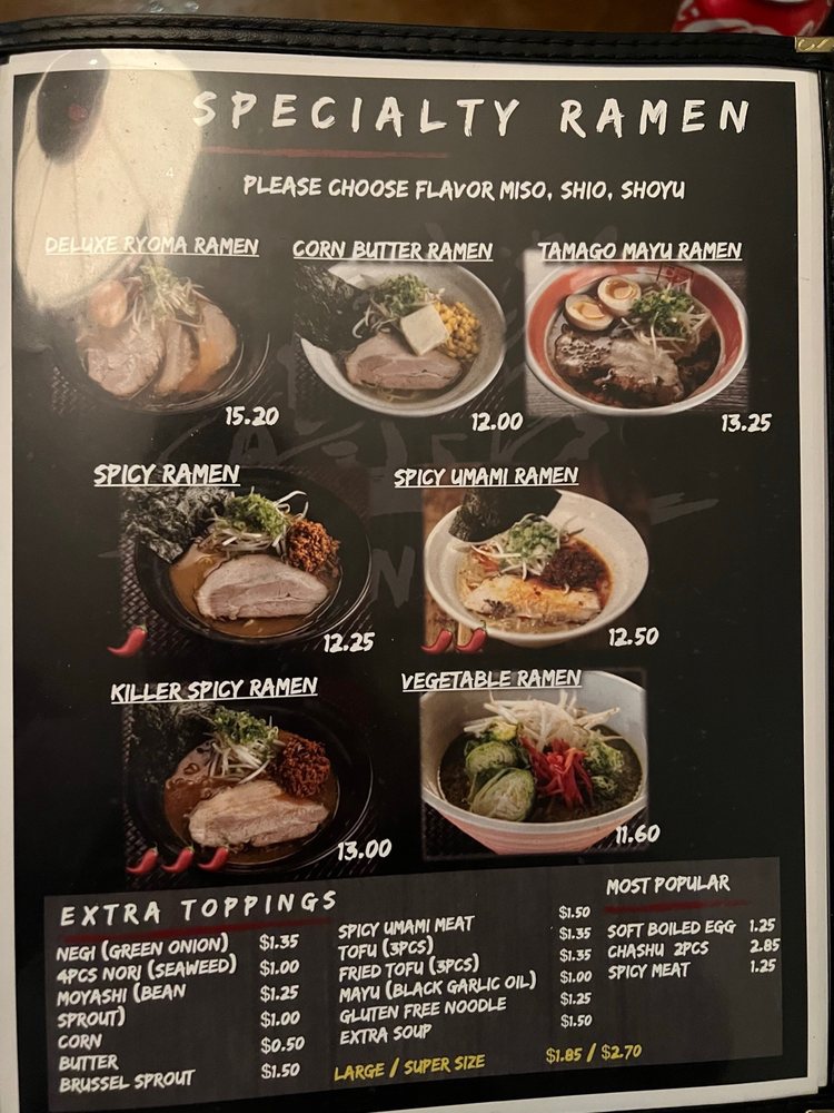 For those seeking variety, the menu offers customizable options, including a tantalizing Spicy Ramen and unique appetizers like Chicken Karaage and Takoyaki. With reasonable prices and a well-curated drink selection, including house sake and flavored sodas, Ramen Ryoma is worth a visit. Dive into a bowl of soul-warming ramen that captures the essence of comfort food.